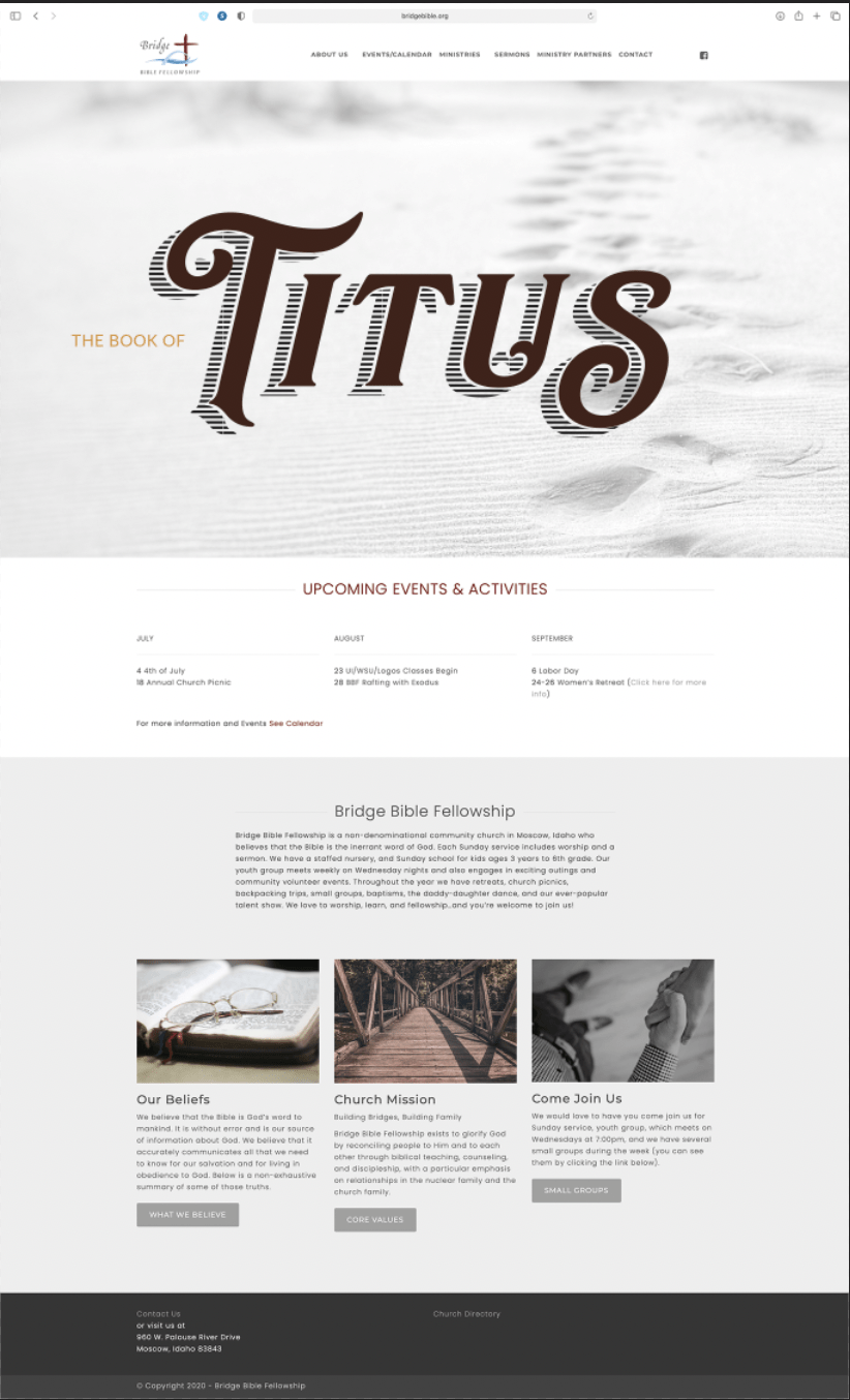 I was approached by Bridge Bible Fellowship to redo their website and update graphics.